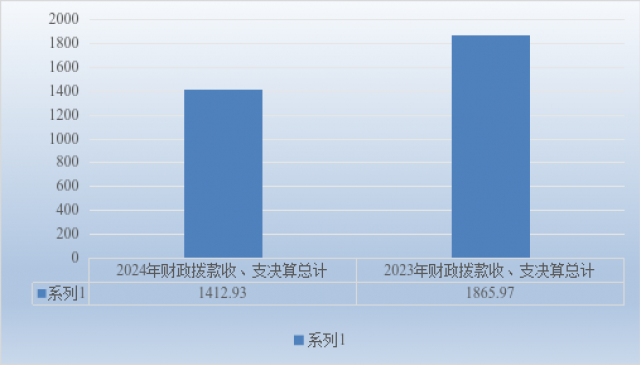 2024年度收、支总计均为1412.93万元。与2023年度相比,收、支总计各减少443.04万元,减少23.87 %。主要变动原因是公用经费及项目指标257.35万元未及时支付年底收回财政。