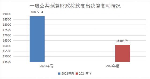 2024年度一般公共预算财政拨款支出16104.74万元,占本年支出合计的100%。与2023年度相比,一般公共预算财政拨款支出减少2700.3万元,下降14.36%。主要变动原因是厉行节约。