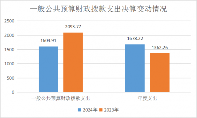 2024年度一般公共预算财政拨款支出1604.91万元,占本年支出合计的95.63%。与2023年度相比,一般公共预算财政拨款支出减少488.86万元,降低23.35%。主要变动原因是其他各项支出的减少。
