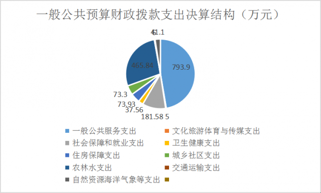 1. 一般公共服务支出:支出决算为793.9万元,完成预算100%,决算数等于预算数的主要原因是年初准确进行预算。