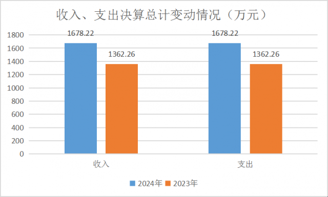 2024年度收入、支出总计均为1678.22万元。与2023年度相比,收入、支出总计各增加315.96万元,增长23.19%。主要变动原因是一般公共服务的支出的增加。