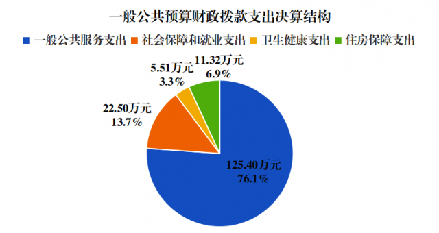2024年度一般公共预算财政拨款支出164.73万元,主要用于以下方面:一般公共服务支出125.40万元,占76.1%;教育支出0万元,占0%;科学技术支出0万元,占0%;文化旅游体育与传媒支出0万元,占0%;社会保障和就业支出22.50万元,占13.7%;卫生健康支出5.51万元,占3.3%;住房保障支出11.32万元,占6.9%。