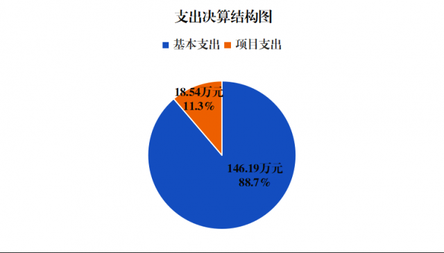 2024年度本年支出合计164.73万元,其中:基本支出146.19万元,占88.7%;项目支出18.54万元,占11.3%;上缴上级支出0万元,占0%;经营支出0万元,占0%;对附属单位补助支出0万元,占0%。