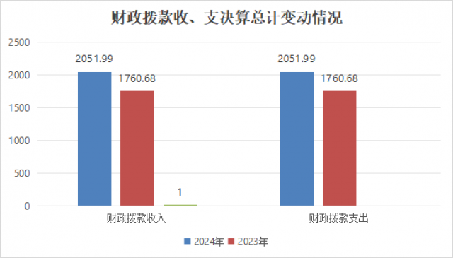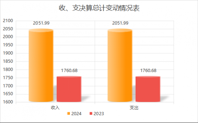 2024年度收、支总计2051.99万元。与2023年相比,收、支总计各增加291.31万元,增加16.55%。主要变动原因是加大了教育投入。