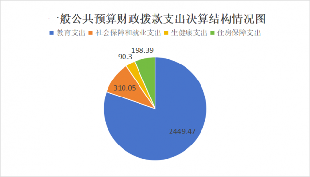 2024年度一般公共预算财政拨款支出3048.21万元,主要用于以下方面:教育支出2449.47万元,占80.36%;社会保障和就业支出310.05万元,占10.17%;卫生健康支出90.30万元,占2.96%;住房保障支出198.39万元,占6.51%。