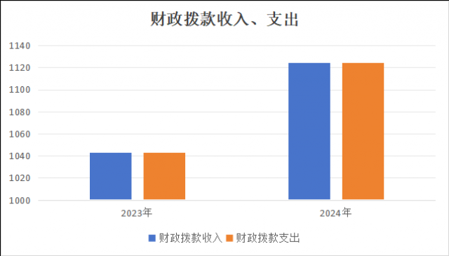2024年度财政拨款收入、支出总计均为1124.35万元。与2023年度相比,财政拨款收入总计、支出总计各增加81.29万元,增长7.79%。主要变动原因是教师工资调标、学校项目经费较2023年增加