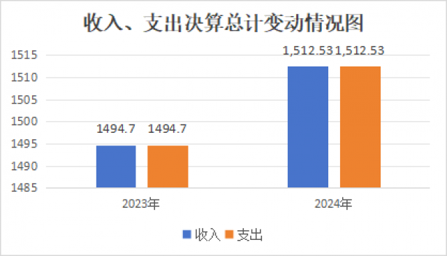 2024年度收入、支出总计均为1,512.53万元。与2023年度相比,收入、支出总计各增加17.83万元,增长1.19%。主要变动原因是教育支出增加。