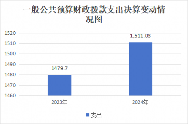 2024年度一般公共预算财政拨款支出1511.03万元,占本年支出合计的99.9%。与2023年度相比,一般公共预算财政拨款支出增加31.33万元,增长2.12%。主要变动原因是教育支出增加。