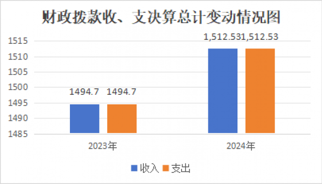 2024年度财政拨款收入、支出总计均为1512.53万元。与2023年度相比,财政拨款收入总计、支出总计各增加17.83万元,增长1.19%。主要变动原因是教育支出增加。