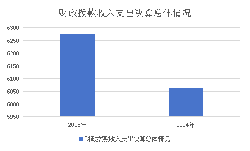 2024年度财政拨款收、支总计均为6063.08万元。与2023年度相比,财政拨款收、支总计各减少212.39万元,减少3.38%。主要变动原因是环卫车辆租赁费及路灯设施安装费支出减少。