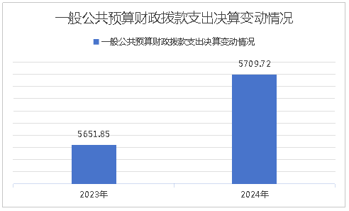 2024年度一般公共预算财政拨款支出5709.72万元,占本年支出合计的94%。与2023年度相比,一般公共预算财政拨款支出增加57.87万元,增长1%。主要变动原因是增加路灯电费支出。