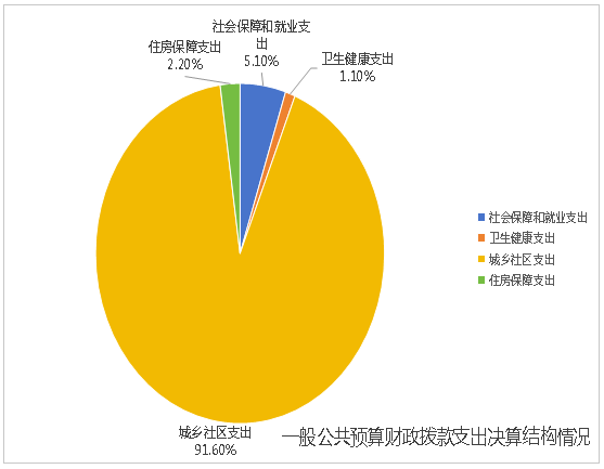 2024年度一般公共预算财政拨款支出5709.72万元,主要用于以下方面:社会保障和就业支出293.21万元,占5.1%;卫生健康支出62.35万元,占1.1%;城乡社区支出5,230.93万元占91.6%;住房保障支出123.23万元,占2.2%。