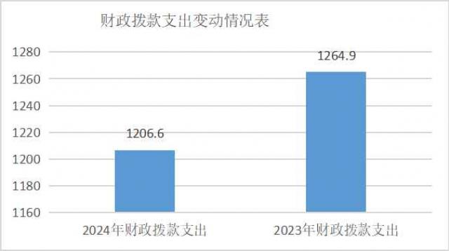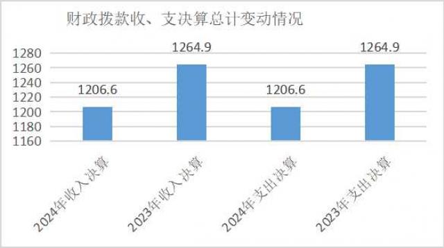 2024年度财政拨款收、支总计均为1206.6万元。与2023年度相比,财政拨款收、支总计各减少58.29万元,下降4.61%。主要变动原因是教师人员减少,工资减少。(注:数据来源于财决01-1表)