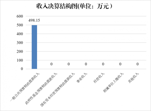 2024年本年收入合计498.15万元,其中:一般公共预算财政拨款收入498.15万元,占100%;政府性基金预算财政拨款收入0万元,占0%;国有资本经营预算财政拨款收入0万元,占0%;上级补助收入0万元,占0%;事业收入0万元,占0%;经营收入0万元,占0%;附属单位上缴收入0万元,占0%;其他收入0万元,占0%。