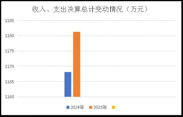 2024年度收、支总计均为1168.13万元。与2023年度相比,收、支总计各减少13.09万元,下降1.1%。主要变动原因是人员减少。