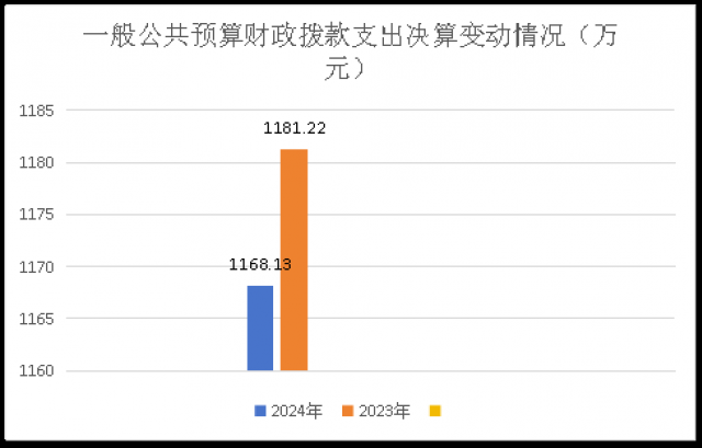 2024年度一般公共预算财政拨款支出1168.13万元,占本年支出合计的100%。与2023年度相比,一般公共预算财政拨款支出减少13.09万元,下降1.1%。主要变动原因是人员减少。