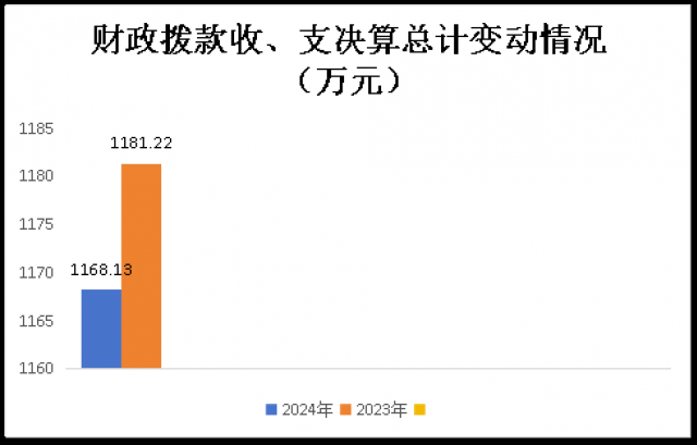 2024年度财政拨款收入、支出总计均为1168.13万元。与2023年度相比,财政拨款收入总计、支出总计各减少13.09万元,下降1.1%。主要变动原因是人员减少。