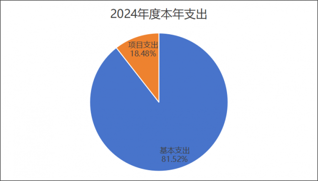 2024年度本年支出合计1168.13万元,其中:基本支出952.23万元,占81.52%;项目支出215.90万元,占18.48%;上缴上级支出0万元,占0%;经营支出0万元,占0%;对附属单位补助支出0万元,占0%。