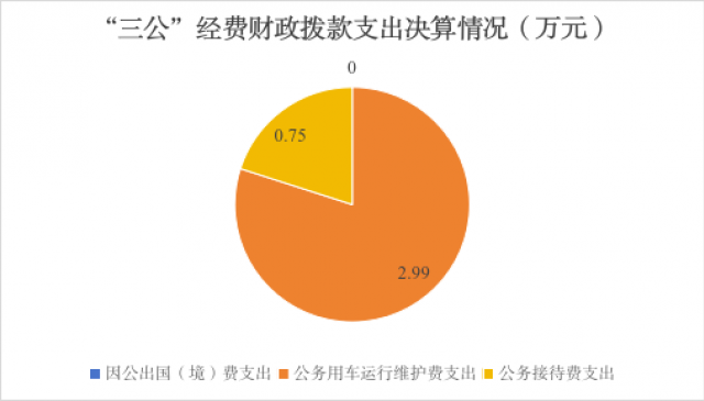 2024年度“三公”经费财政拨款支出决算中,因公出国(境)费支出决算0万元,占0%;公务用车运行维护费支出决算2.99万元,占80%;公务接待费支出决算0.75万元,占20%。具体情况如下: