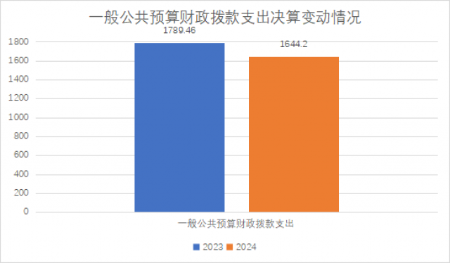 2024年度一般公共预算财政拨款支出1644.2万元,占本年支出合计的100%。与2023年度相比,一般公共预算财政拨款支出减少145.26万元,减少8.1%。主要变动原因是学生人数和教师人数减少。