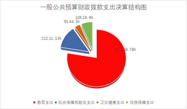 2024年度一般公共预算财政拨款支出1644.2万元,主要用于以下方面:教育支出1275.39万元,占77.6%;社会保障和就业支出212.11万元,占12.9%;卫生健康支出51.44万元,占3.1%;住房保障支出105.26万元,占6.4%。