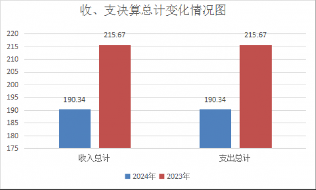2024年度收入、支出总计均为190.34万元。与2023年度相比,收入、支出总计各减少25.33万元,下降11.74%。主要变动原因是项目支出减少。