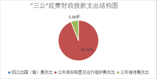 2024年度“三公”经费财政拨款支出决算中,因公出国(境)费支出决算0万元,占0%;公务用车购置及运行维护费支出决算3万元,占94.04%;公务接待费支出决算0.19万元,占5.96%。具体情况如下: