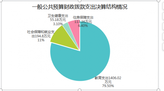 2024年度一般公共预算财政拨款支出1769.37万元,主要用于以下方面:一般公共服务支出0万元,占0%;教育支出1406.02万元,占79.5%;科学技术支出0万元,占0%;文化旅游体育与传媒支出0万元,占0%;社会保障和就业支出194.8万元,占11%;卫生健康支出55.18万元,占3.1%;住房保障支出113.36万元,占6.4%。(注:仅罗列本部门涉及的全部功能分类科目,至类级)