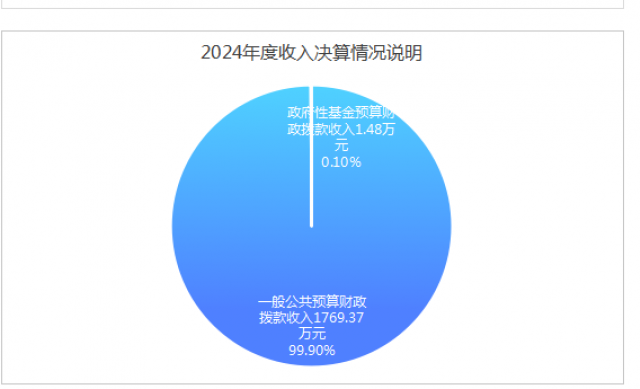 2024年度本年收入合计1770.85万元,其中:一般公共预算财政拨款收入1769.37万元,占99.9%;政府性基金预算财政拨款收入1.48万元,占0.1%;国有资本经营预算财政拨款收入0万元,占0%;上级补助收入0万元,占0%;事业收入0万元,占0%;经营收入0万元,占0%;附属单位上缴收入0万元,占0%;其他收入0万元,占0%。(注:仅罗列本部门涉及的收入)