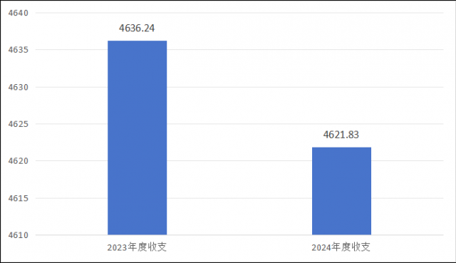 2024年度收支总计4621.83万元,与2023年的4636.24万元相比,收、支总计各减少了14.41万元,减少了3.1%。主要变动原因是减少了人员经费及项目支出资金的投入等。