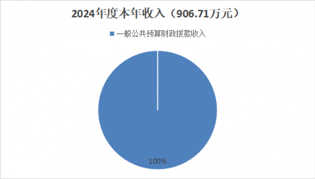 2024年度本年收入合计906.71万元,其中:一般公共预算财政拨款收入906.71万元,占100%;政府性基金预算财政拨款收入0万元,占0%;国有资本经营预算财政拨款收入0万元,占0%;上级补助收入0万元,占0%;事业收入0万元,占0%;经营收入0万元,占0%;附属单位上缴收入0万元,占0%;其他收入0万元,占0%。