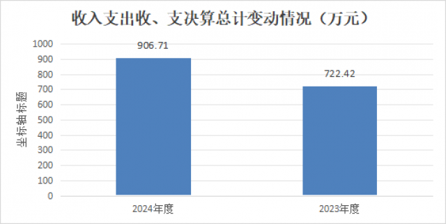 2024年度收、支总计均为906.71万元。与2023年度相比,收、支总计各增加184.29万元,增长25.51%。主要变动原因是新增运动场维修改造项目。