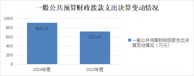 2024年度一般公共预算财政拨款支出906.71万元,占本年支出合计的100%。与2023年度相比,一般公共预算财政拨款支出增加184.29万元,增长25.51%。主要变动原因是新增运动场维修改造项目。