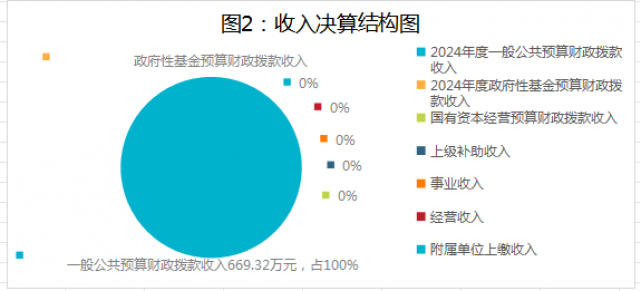 2024年度本年收入合计669.32万元,其中:一般公共预算财政拨款收入669.32万元,占100%;政府性基金预算财政拨款收入0万元,占0%;国有资本经营预算财政拨款收入0万元,占0%;上级补助收入0万元,占0%;事业收入0万元,占0%;经营收入0万元,占0%;附属单位上缴收入0万元,占0%;其他收入0万元,占0%。