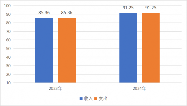 2024年度收入、支出总计均为91.25万元。与2023年度相比,收入、支出总计各增加5.89万元,增长6.90%。
