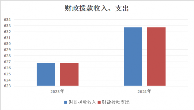 2024年度财政拨款收入、支出总计均为632.74万元。与2023年度相比,财政拨款收入总计、支出总计各增加5.91万元,增长0.94%。主要变动原因是人员经费及项目经费增加。