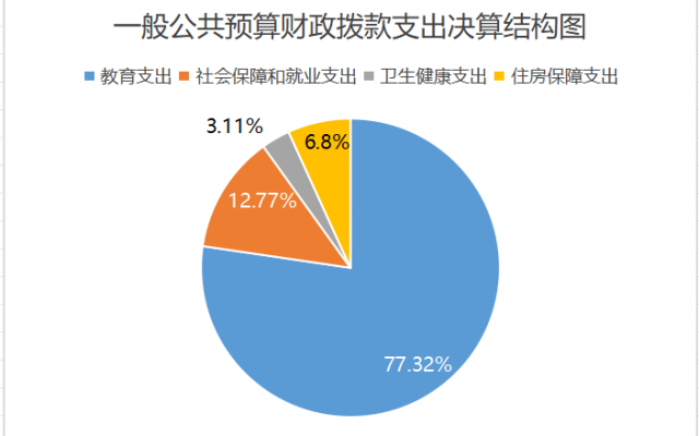 2024年度一般公共预算财政拨款支出2687.08万元,主要用于以下方面:教育支出2077.77万元,占77.32%;社会保障和就业支出343.12万元,占12.77%;卫生健康支出83.56万元,占3.11%;住房保障支出182.64万元,占6.8%。