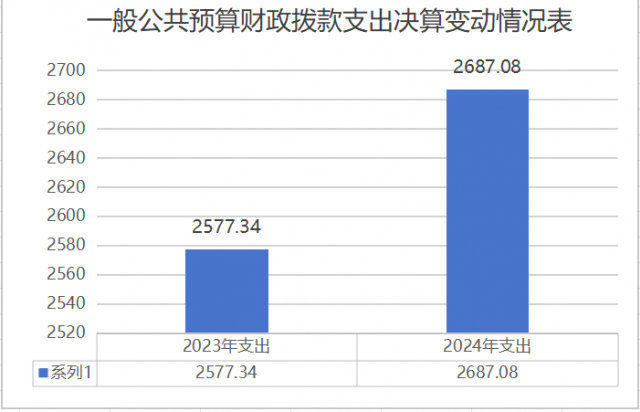 2024年度一般公共预算支出决算数为2687.08万元,完成预算100%。其中: