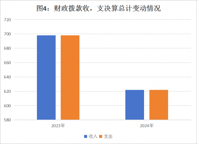 2024年财政拨款收、支总计621.81万元。与2023年相比,财政拨款收、支总计各减少76.11万元,减少10.9%。主要变动原因是学生人数减少、教师人数减少。(注:数据来源于财决01-1表)