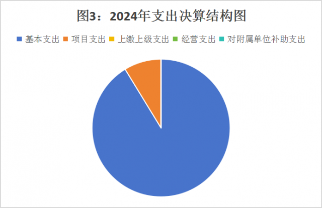 2024年本年支出合计621.81万元,其中:基本支出567.63万元,占91.3%;项目支出54.18万元,占8.7%;上缴上级支出0万元,占0%;经营支出0万元,占0%;对附属单位补助支出0万元,占0%。(注:数据来源于财决04表,仅罗列本单位涉及的支出。)