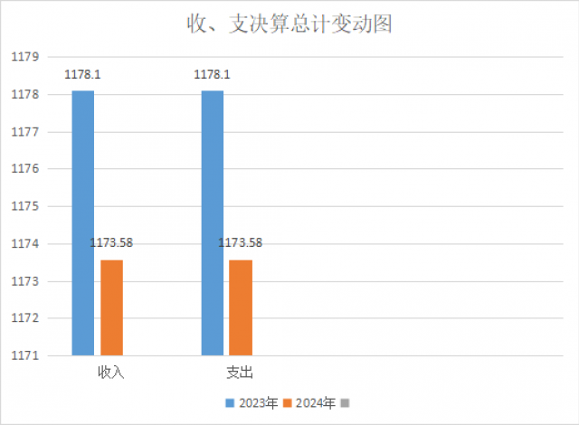 2024年度收、支总计1173.58万元。与2023年1178.1万元相比,收、支总计各减少4.52万元,减少0.38%。主要变动原因是项目经费减少。