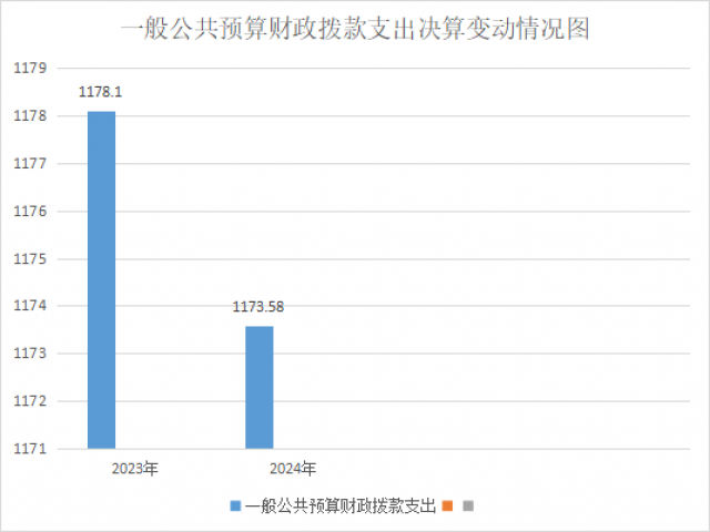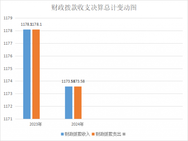 2024年一般公共预算财政拨款支出1173.58万元,占本年支出合计的100%。与2023年相比,收、支总计各减少4.52万元,减少0.38%。主要变动原因是项目经费减少。
