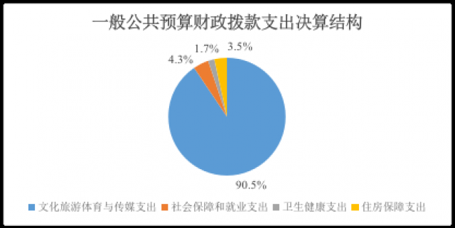 2024年度一般公共预算财政拨款支出994.59万元,主要用于以下方面:文化旅游体育与传媒支出900.6万元,占90.5%;社会保障和就业支出42.4万元,占4.3%;卫生健康支出17.23万元,占1.7%;住房保障支出34.36万元,占3.5%。