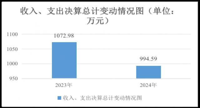 2024年度收入、支出总计均为994.59万元。与2023年度相比,收入、支出总计各减少78.39万元,下降7.3%。主要变动原因是2024年度减少了联合执法大队工作经费。