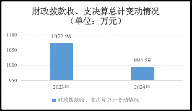 2024年度财政拨款收入、支出总计均为994.59万元。与2023年度相比,财政拨款收入总计、支出总计各减少78.39万元,下降7.3%。主要变动原因是2024年度减少了联合执法大队工作经费。