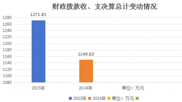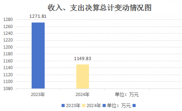 2024年度财政拨款收入、支出总计均为1149.83万元。与2023年度相比,财政拨款收入总计、支出总计各减少121.98万元,下降10.61%。主要变动原因是学生人数减少,教育投入减少。