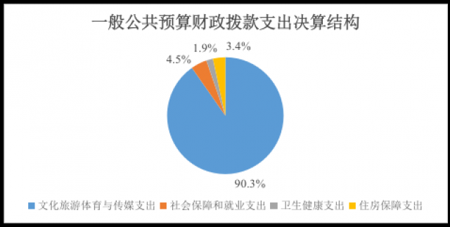 2024年度一般公共预算财政拨款支出433.49万元,主要用于以下方面:文化旅游体育与传媒支出391.28万元,占90.3%;社会保障和就业支出19.31万元,占4.5%;卫生健康支出8.02万元,占1.9%;住房保障支出14.87万元,占3.4%。