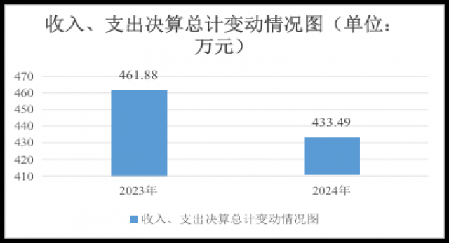 2024年度收入、支出总计均为433.49万元。与2023年度相比,收入、支出总计各减少28.39万元,下降6.1%。主要变动原因是2024年度我单位减少了联合执法大队工作经费。