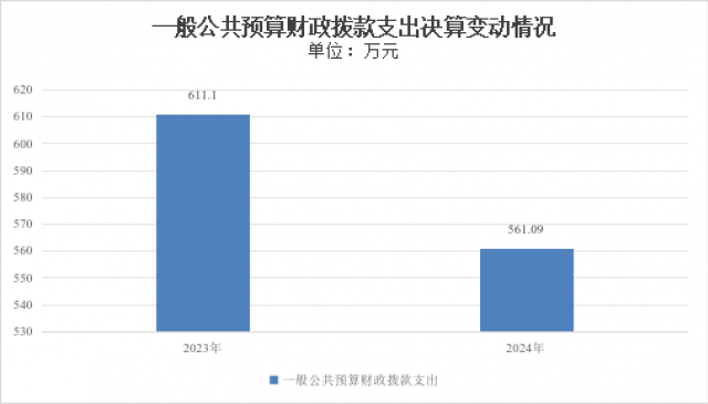 2024年度一般公共预算财政拨款支出561.09万元,占本年支出合计的100%。与2023年度相比,一般公共预算财政拨款支出减少50.01万元,下降8.18%。主要变动原因是在职人员减少以及项目支出减少。
