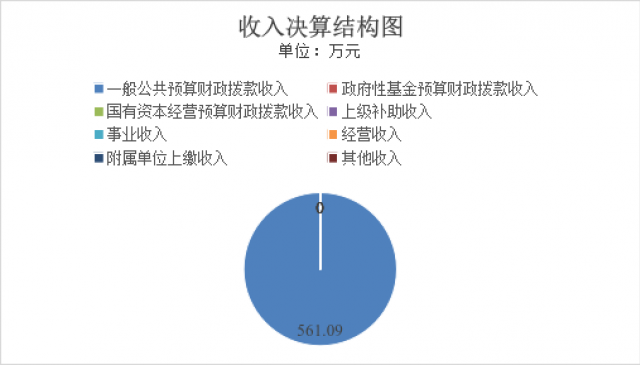 2024年度本年收入合计561.09万元,其中:一般公共预算财政拨款收入561.09万元,占100%;政府性基金预算财政拨款收入0万元,占0%;国有资本经营预算财政拨款收入0万元,占0%;上级补助收入0万元,占0%;事业收入0万元,占0%;经营收入0万元,占0%;附属单位上缴收入0万元,占0%;其他收入0万元,占0%。